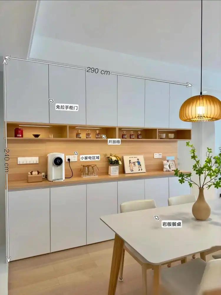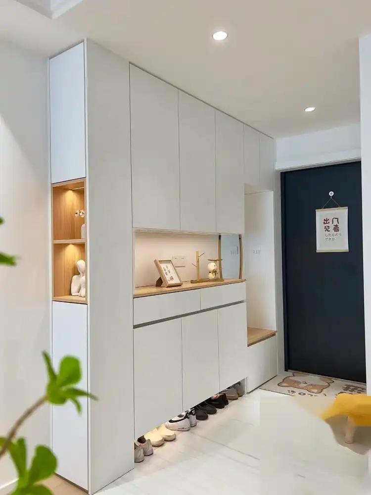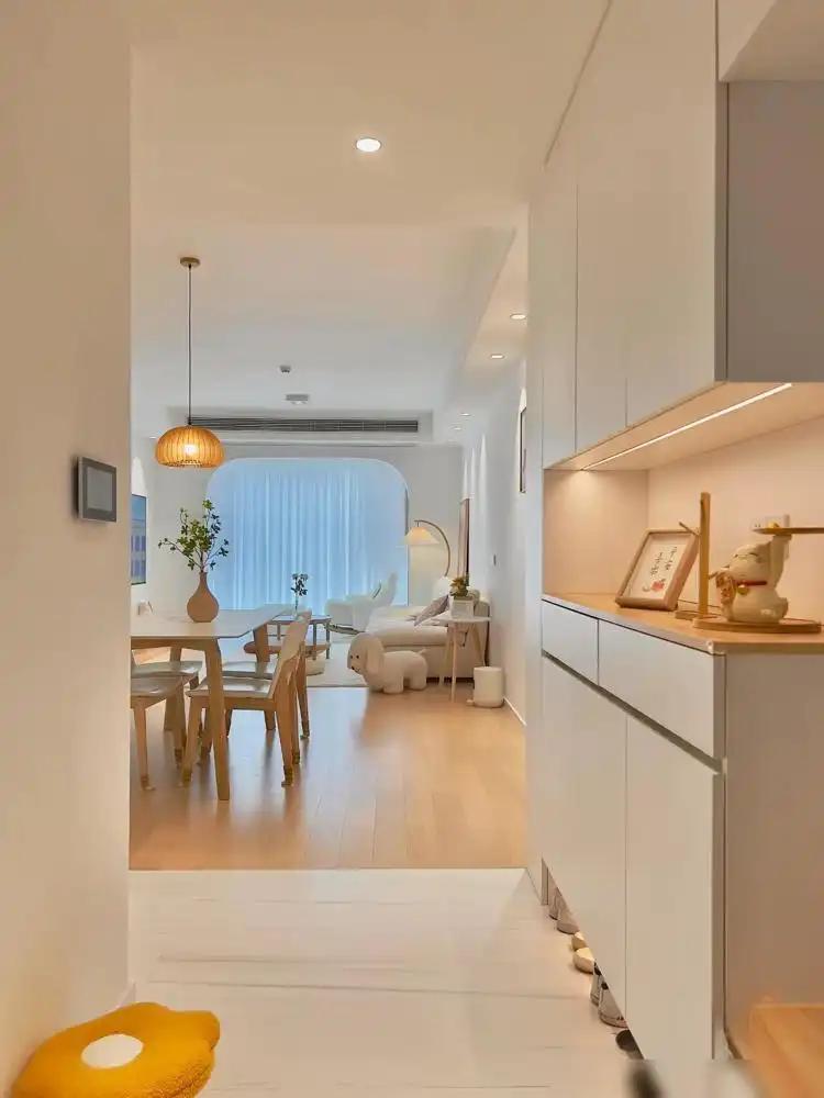 小户型最让东说念主头疼的问题就是空间局促,不够收纳。但若是璷黫作念柜子,会让所有空间显得很压抑。这位业主家的收纳柜就作念得很玄机,玄关鞋柜、餐边柜和卧室悬浮柜齐很好地兼顾了收纳与好意思不雅,就连墙面齐莫得放过,中间作念出来的壁龛既不错用来摆放荫庇品,又不错收纳一些小物件,充分哄骗每一寸空间。