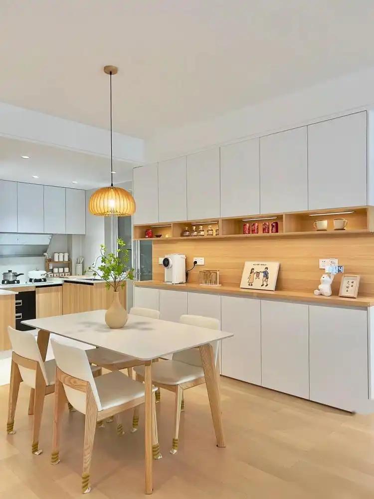 这位业主家的厨房天然不大,但想象师哄骗U型厨房想象,将操作台、洗涅和烹调三个功能区紧凑安排,大大提高了厨房的使用遵循。业主示意,自从使用了这种动线想象,作念饭的时代显着裁减了,何况一家东说念主不错同期在厨房里行为,不会相互影响。
