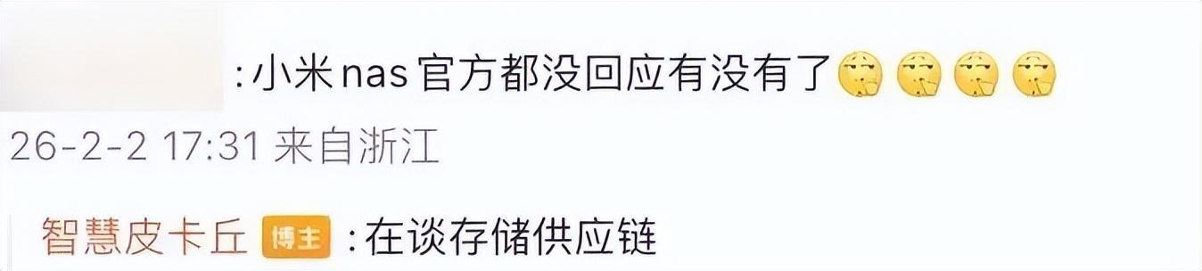 博主@聪惠皮卡丘 的爆料也表示,小米NAS形势还在,目下还在道存储供应链,瞻望本年发布。