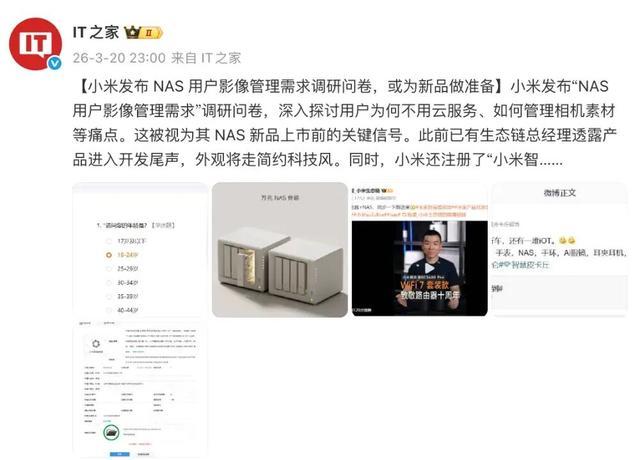 小米发布“NAS 用户影像贬责需求”调研问卷,深切商酌用户为何不必云做事、若何贬责相机素材等痛点。这被视为其 NAS 新品上市前的要道信号。